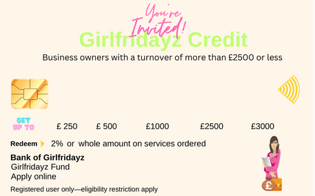Girlfridayz Credit offers you credit to use our award-winning services but we don't offer you a loan. However, the credit offer APR is 21.9% on credit offer and use. You need to repay the credit amount of money given in 3 or 6 payments maximum. You can get up to £3000 in your account with us if your business is profitable and generate £2500 profit or more yearly.